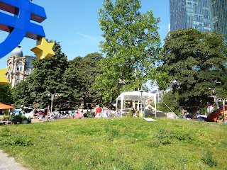la place willy brandt, a 2 pas de l hostel, est occupee : c est juste au pied de la banque centrale europeenne et les militants de Occupy Frankfurt y ont installe plein de tentes (j aurais peut etre pu dormir ici finalement...), un jardin, des forums...